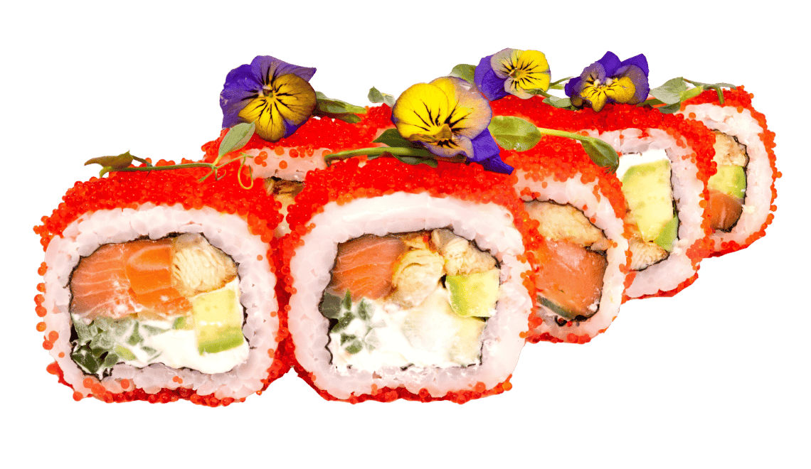 Кожен шматочок наповнений ніжною свіжою сьомгою, багатим на смак соковитим вугрем та оксамитовим авокадо. Ми завершуємо цей шедевр шовковистим сиром Філадельфія та огортаємо його щедрим шаром хрусткої червоної ікри Тобіко.
