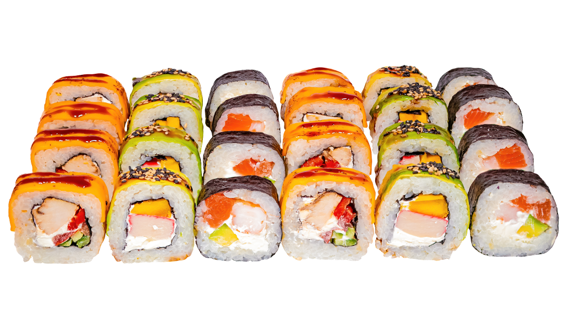 Сет “Дзен” — три настрої в одній коробці: витончений Кіото, яскравий Манго грін і класичний Осака. Ідеальний баланс кремовості, свіжості та хрумкості — на двох або для компанії. Замовляй із доставкою у Дачному, Холодній балці