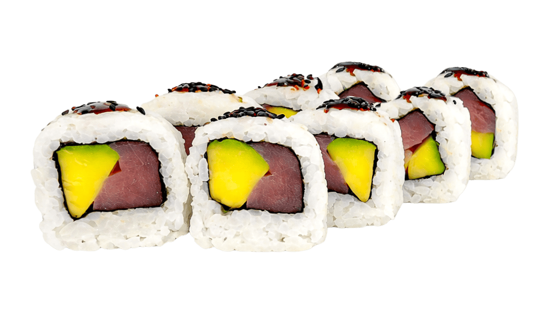 Шукаєте ідеальні гастрономічні враження від суші з тунцем? Рол Тацумі від Sunrise Food створений для справжніх поціновувачів японської кухні. Ми використовуємо лише високоякісні інгредієнти: добірний рис, найсвіжіше філе тунця та ідеально стигле авокадо. Класичний соус унагі додає карамельної нотки, яка робить смак незабутнім.